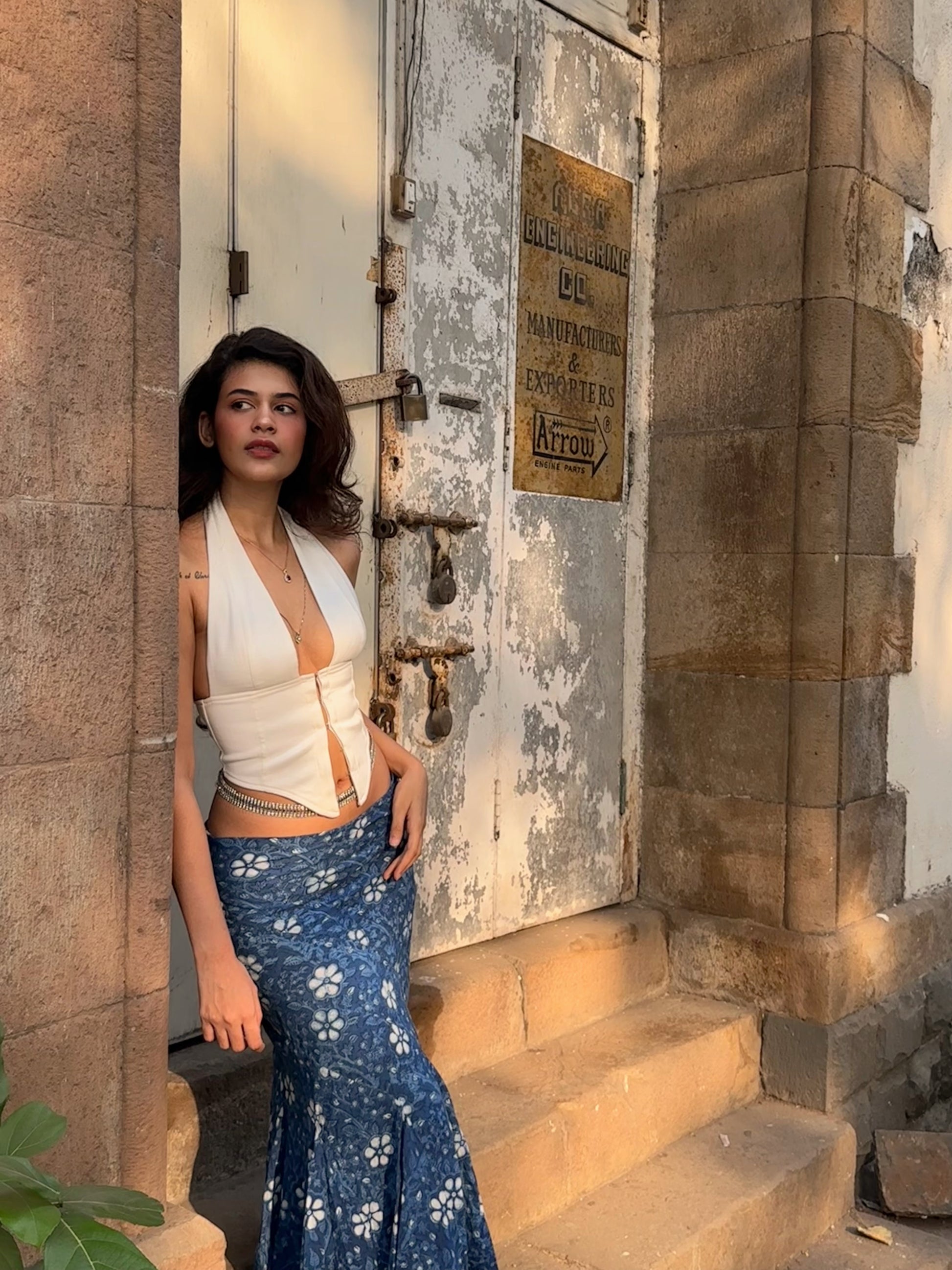 The Aaila Halter Top is for those bold enough to own their style. Handcrafted from luxurious handloom cotton, this front-open halter gives you complete creative control—button it up for understated elegance or leave it provocatively undone for maximum impact.