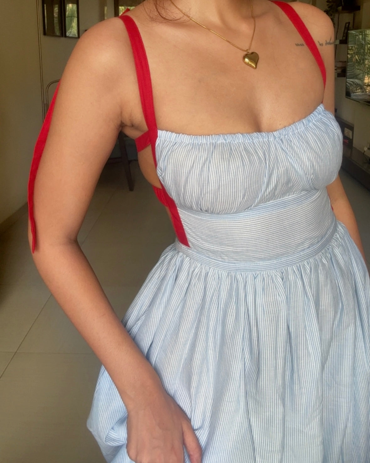 The Viral Divinity Maxi featuring a backless design, contrast multi-way tie ups, and flattering gathers at the waist for a stunning silhouette. The attached mul cotton lining and elasticated neck provide both comfort and style.