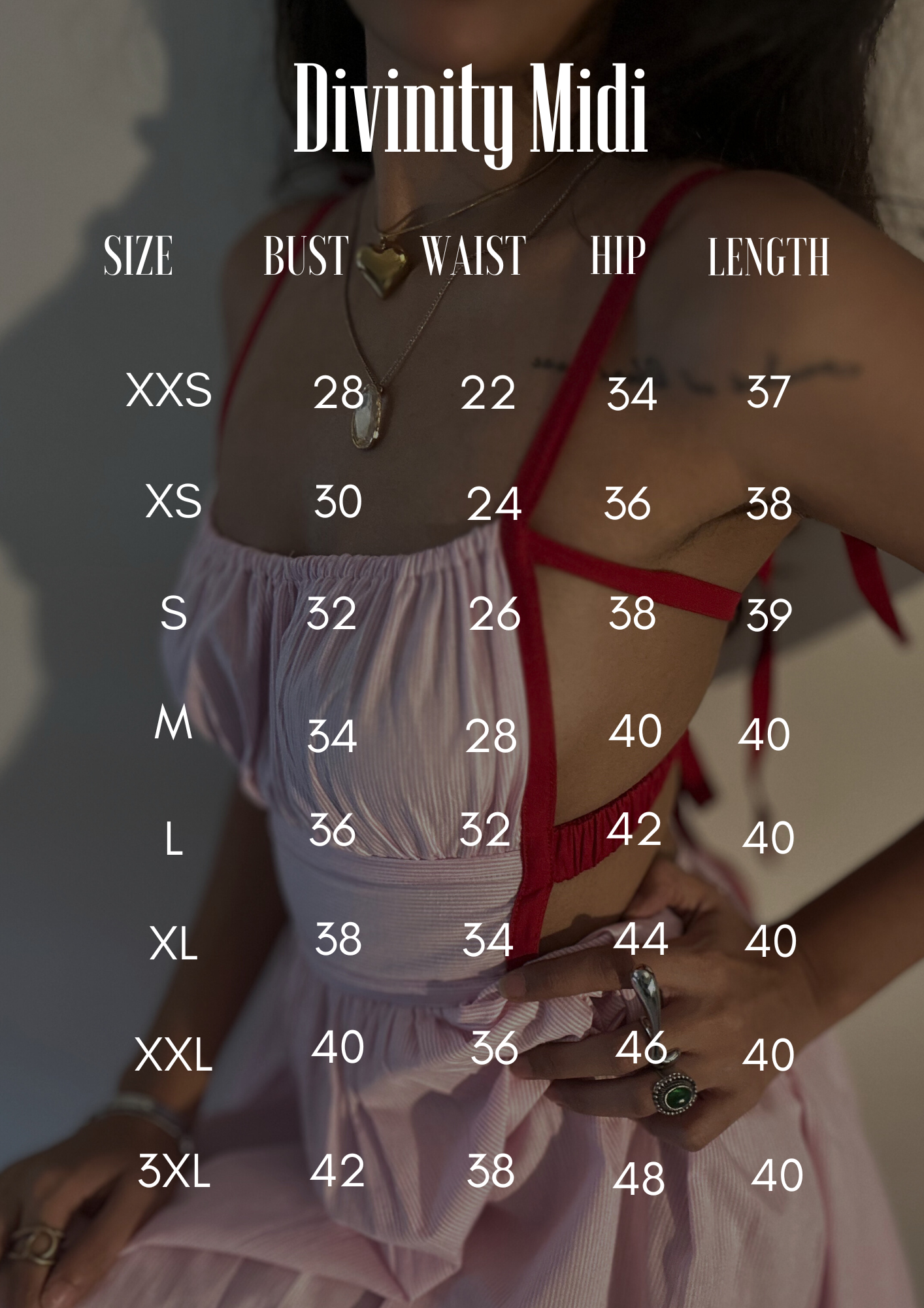 Turn heads with the Divinity Midi featuring a backless design, multi-way tie ups, and flattering gathers at the waist for a stunning silhouette. The attached mul cotton lining and elasticated neck provide both comfort and style.